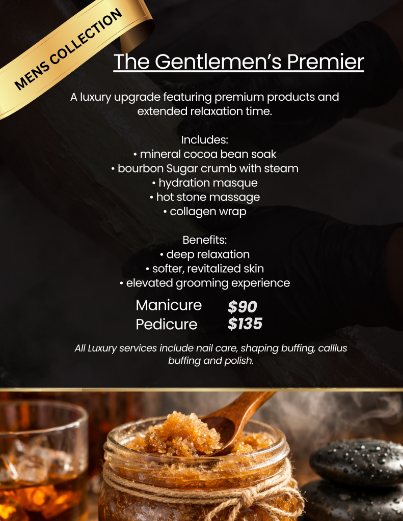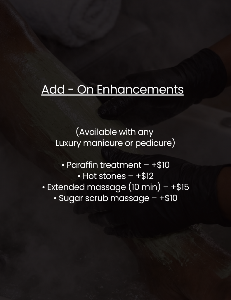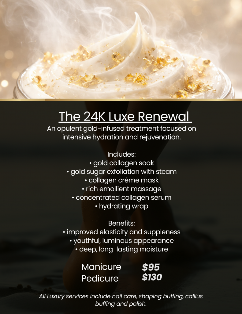 Our luxury manicure and pedicure menu is a curated experience created by a select group of independent professionals within Nay Nicole, specializing in elevated natural nail and skin care. Designed to restore, refine, and enhance, this experience goes beyond the standard service – including a dedicated luxury collection for men.
